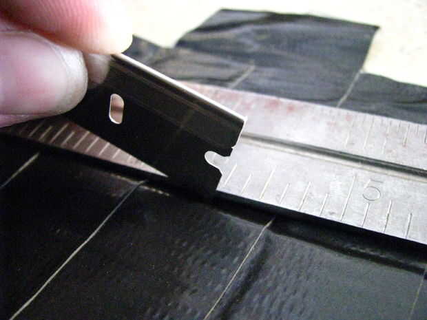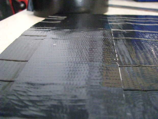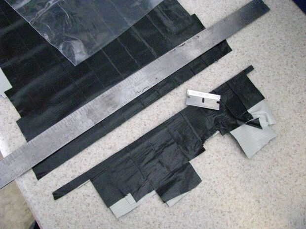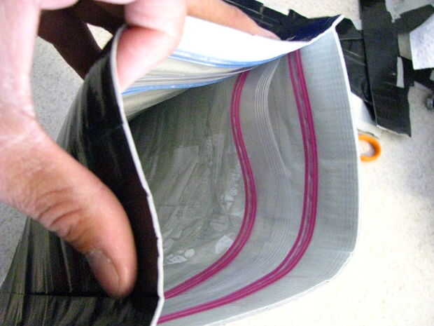 Aplique la cinta en el fondo y los lados para cubrir las costuras de ajuste. También aplicar una sola tira horizontal de la cinta sobre el área de la cerradura del cierre relámpago para presionar el cierre de cremallera cerrado.