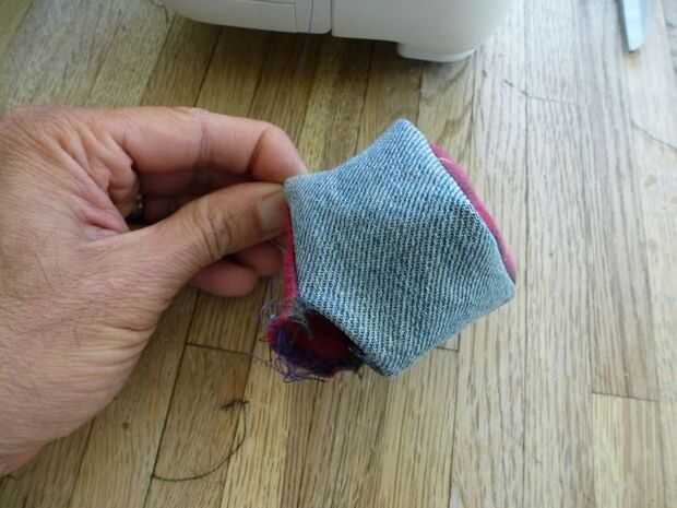 Cosa de una marca a otra, invirtiendo la costura en ambos extremos para que encaje en la (Foto 2).