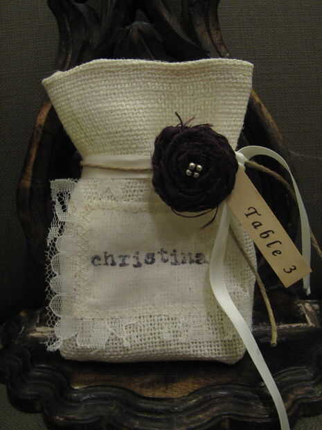 mi blog de boda . Una cosa de marcador de cáñamo natural, perlas y un encanto clave irá dentro de estas bolsas. Usted puede encontrar las instrucciones sobre cómo hacer el tanga favorito aquí y