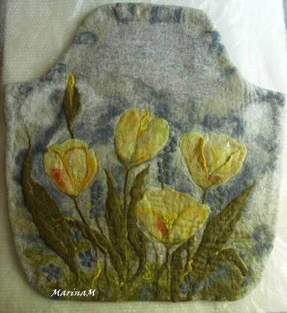 mi primer intento en fieltro (¡ a propósito!)La bolsa en una tensión bastante floja de ganchillo, luego ponerlo en una bolsa de malla en la lavadora en agua caliente, enjuague con agua fría. Usar detergente y había añadido un par de pantalones vaquer