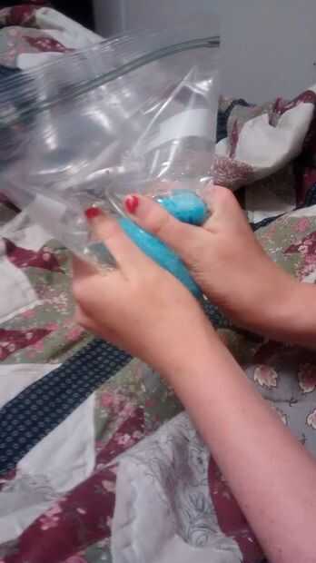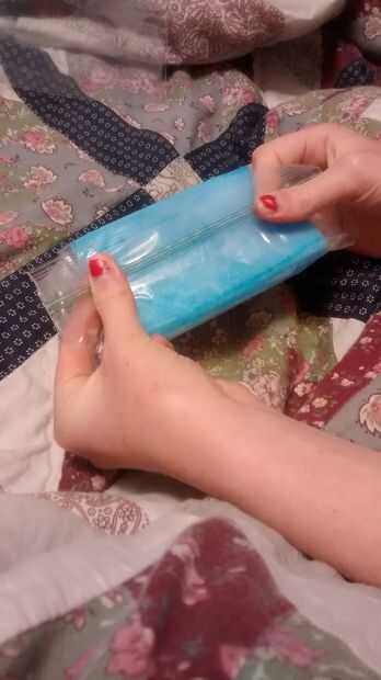 9) retirar del congelador y Dale el paquete al apretar debe ser semi sólido pero todavía moldeable.