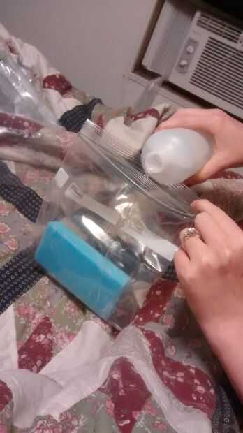 3) pobre cerca de una cuchara de alcohol isopropílico en bolsa