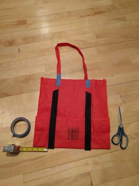 Esto es un arte intermedio y útil para hacer con cinta adhesiva y te hará sonreír una vez que termine. Pero antes de hacerlo, usted puede practicar más con cinta adhesiva. La bolsa va alrededor de las manijas de la bici, así que usted puede almacenar