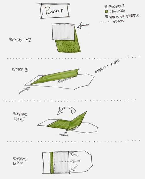2. coser el bolsillo y los lados buen forro juntos, voltean y pespuntear.
