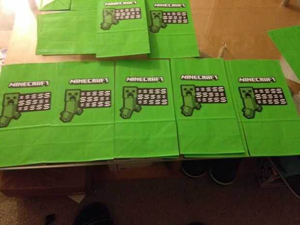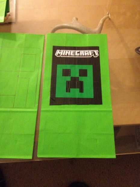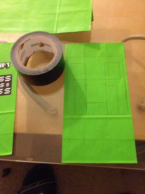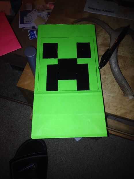 -Usando su pluma/lápiz y regla dibujar la cara de Creeper en las bolsas de Favor
