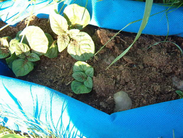 a medida que crece la planta Desenrolle la bolsa y agregar más mezcla.  Agua de vez en cuando no deje que seque.  Mantenga a pleno sol.  Cosecha de 4 semanas después de morir de flores o en la primera helada.  Bolsa de rollo de cosecha y verter hacia fuera.  Esta es mi entrada para el concurso de jardinería.