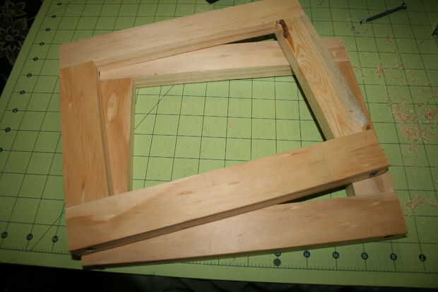 Conecte la pantalla a uno de los marcos con la pistola de grapas. Tire de la pantalla como burla como sea posible y un martillo las grapas planas.
