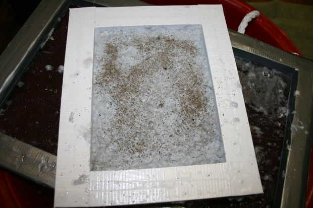 Ahora que tiene su pulpa y sus marcos de su tiempo para hacer su papel. En primer lugar establecer su área.