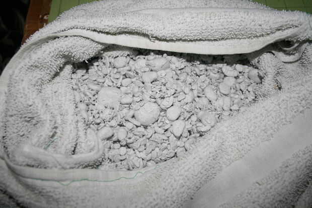Coloque las bolas de pulpa en la toalla y repita hasta que la pulpa se ha ido.