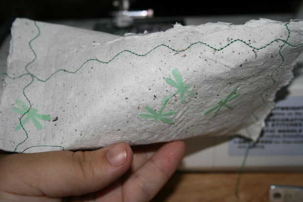 Llene la bolsa con alpiste o favores de la boda y agrega sus instrucciones de plantación.
