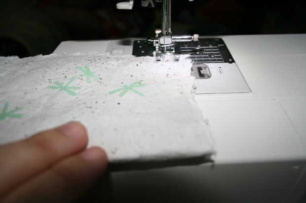 Pellizque la costura junto con el lado opuesto y coser por el borde para sellar la bolsa.