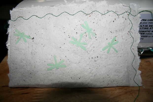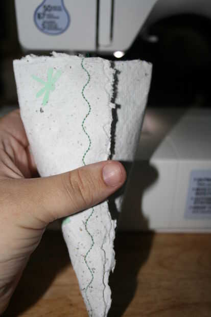 Comience doblando el papel a la mitad y coser juntas un borde corto y el borde largo. He utilizado un hilo oscuro asi se puede ver mejor en el libro blanco.