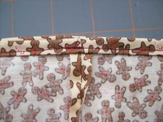Doblar el borde superior hacia abajo de un cuarto de pulgada y luego otro cuarto de pulgada y pin. Esto le dará un suave borde superior ya que no estamos alineando las bolsas.