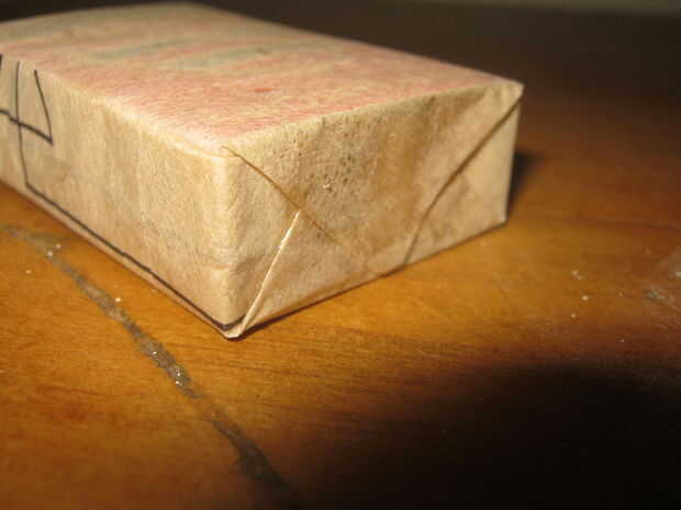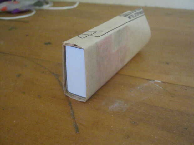 2. Envuelva la pieza alrededor de su caja de cerillas y encolar las piezas laterales del patrón junto (teniendo cuidado de no tener pegamento en la caja de cerillas