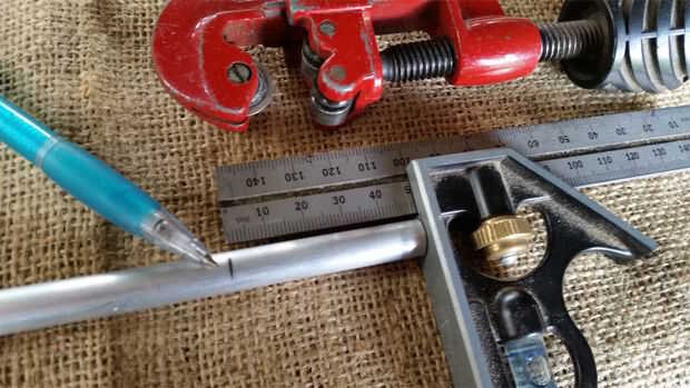 1. cortar el tubo de aluminio que es aproximadamente 10mm (3/8") más ancho que el tubo interior aplanado.