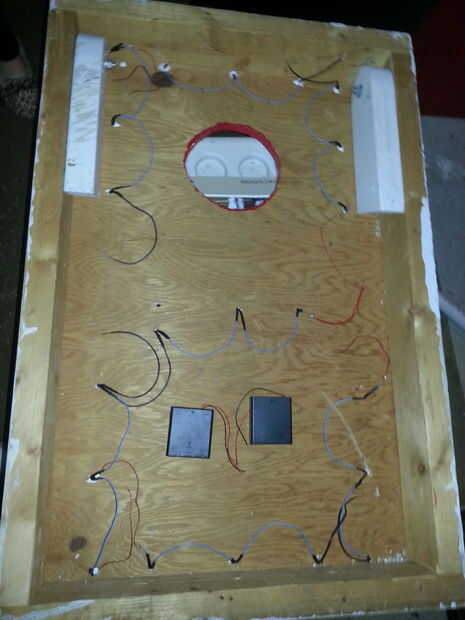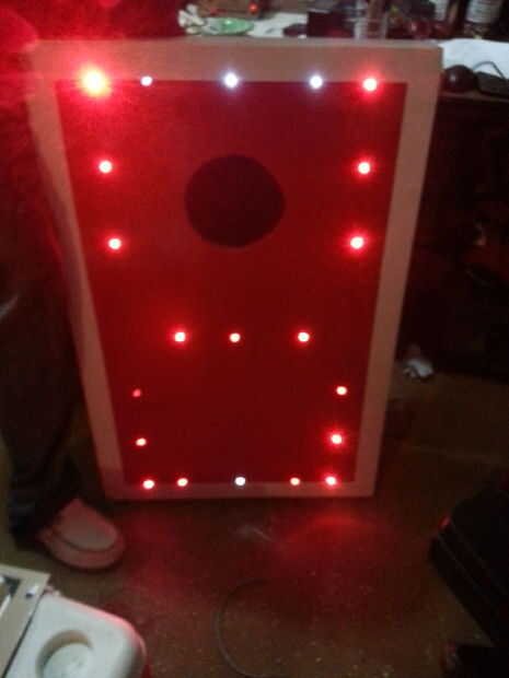 Se ha añadido luces led a mis consejos. Puedo energía las luces dos maneras de 12 voltios. La primera es que tengo acumuladores que contienen 4 pilas AA. Tengo dos de ellos conectados juntos poniendo a doce voltios. La otra que les energía es con baterías de 12 voltios que hice conectores para sentarse detrás de los tableros. Tengo una resistencia de 130 ohm en serie con 3 leds. rojo wire-resistor-led-wire-led-wire-led alambre-cable negro. Todos los conjuntos de tres leds están conectados en serie. Entonces todos aquellos están cableados en paralelo. Conectarse todo el cable rojo positivos y negro cables negitive.