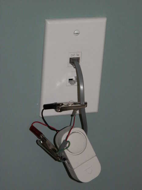 Otra manera, se muestra aquí, es clip del a los cables rojo y verdes de un conector de teléfono estándar RJ11.