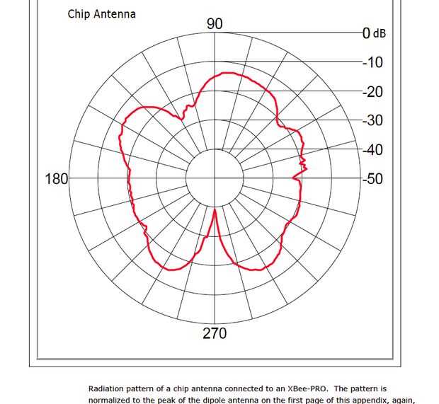 La imagen adjunta muestra los valores RSSI en función del ángulo para los módulos XBee con la antena de la viruta. (Para otras configuraciones de antena consulte el Manual de antena del módulo de RF). Como se puede ver, el patrón es altamente anisotrópico y habrá que esperar que la orientación de la XBees afectará grandemente el valor RSSI.