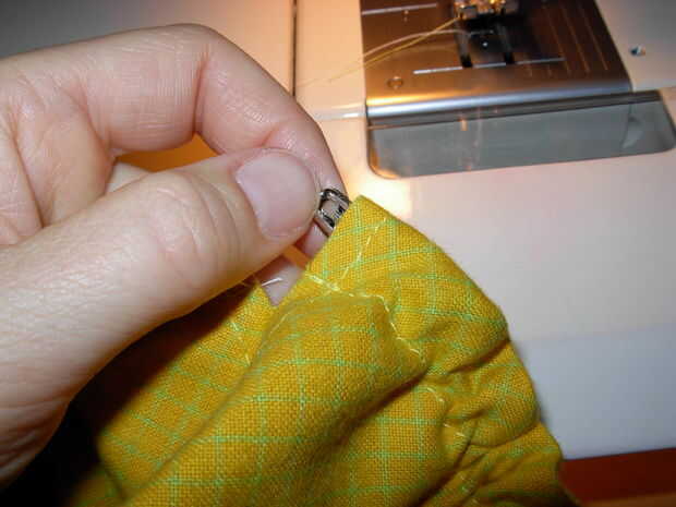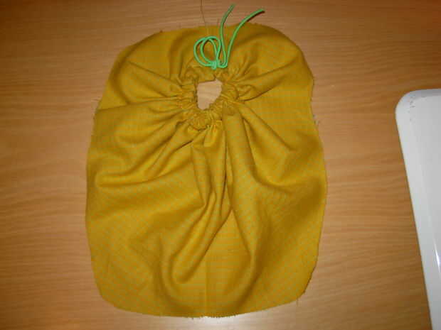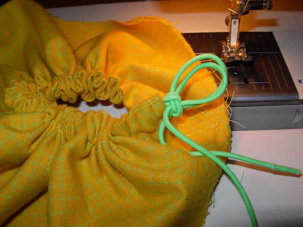 Foto 8 y 9: Tire de la cuerda para arriba tan apretados como quieras y hacer un nudo del resbalón. El bolsillo de la esfinge está casi completo!