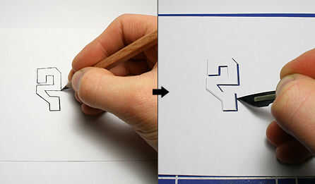 a hacer tu plantilla tamaño bolsillo, basta con sacar su diseño en un pedazo pequeño de papel y luego recortar con su bisturí / cuchillo Xacto.