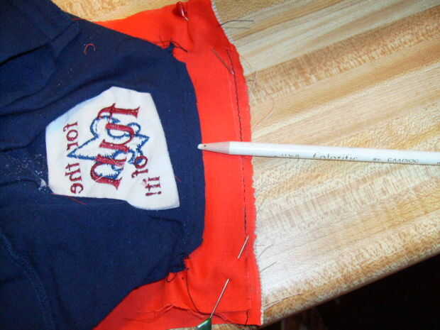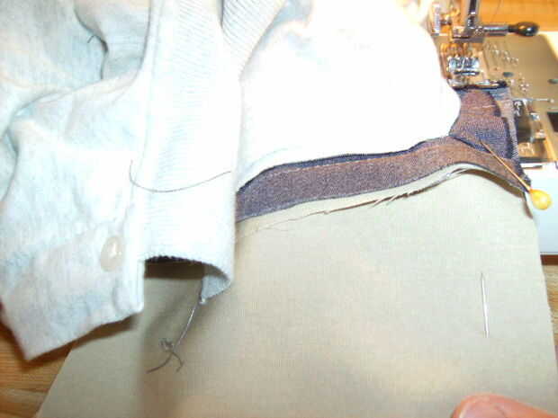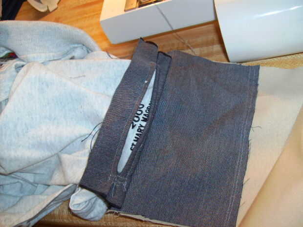 A continuación, llevar al otro extremo del bolsillo para coser a la parte inferior del ribete.