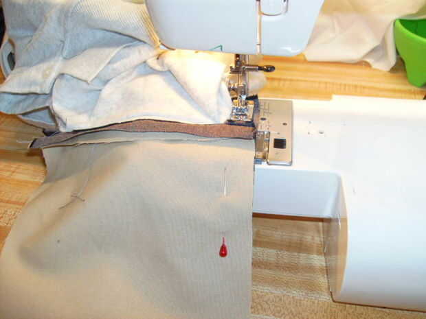 Después de la parte superior e inferior son cosidas a coser los lados de los bolsillos