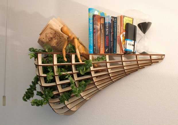 Es un estante con una nueva función y que es almacenar no sólo un par de libros pero también cosas que caerían normalmente de como sombreros y guantes. Un gato cabrían ;-) pero también revistas y plantas, esta estructura es muy firme. Llenar el bolsillo con una lámpara y su habitación se enciende por arte de magia.