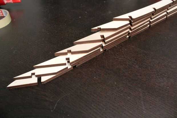 Comience con el más pequeño en la parte inferior y suba. Use pegamento para fijar estas piezas a la Asamblea ya ha hecho. Los extremos de estas piezas horizontales no necesita ningún pegamento.