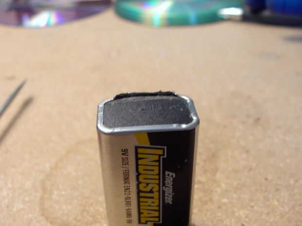 Una vez que sabemos va a caber, sólo una simple cuestión de hacer el hack de batería de 9v buena ole en la batería muerta