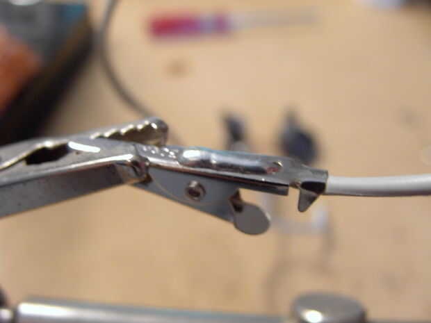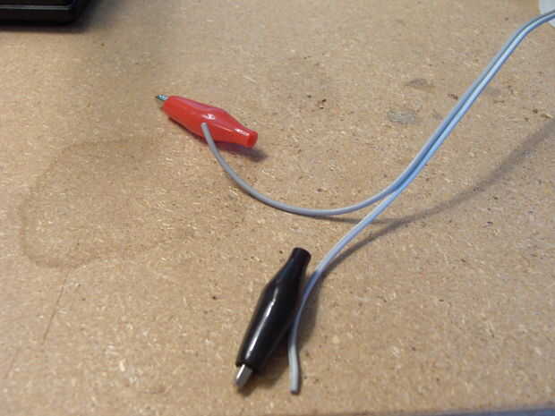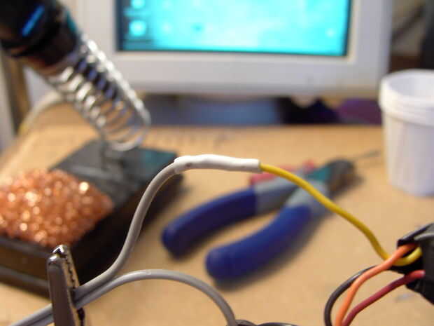 Deslice el tubo del encogimiento del calor sobre la articulación y el calor hasta que este apretado. Entonces finalmente la soldadura en algunos clips de cocodrilo al otro extremo del cable para que pueda conectar el altavoz.