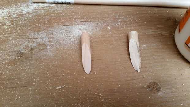 Para la próxima, usted necesita cortar el cuadrado de la espiga en puesto que la punta está en el ángulo que usted necesita.