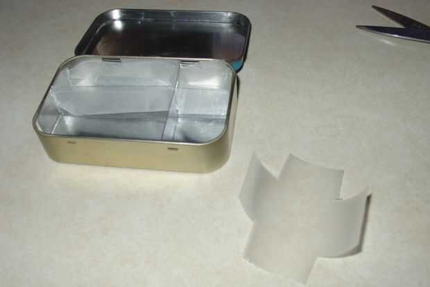 Hacer forros para cada sección de corte con papel en forma de "t" que se pliega en un cubo con una tapa abierta.  Grabación en forma no es necesario, sólo Deslice las secciones de la lata.  Los trazadores de líneas no son estrictamente necesarias, pero ayudará a limpiar tu lata y hacer sacar alimentos pegajoso más fácil.