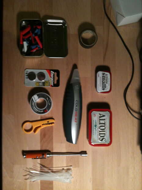 Este instructivo se documentan los pasos necesarios para modificar y ajustar cada herramienta y accesorio útil para un trabajo de soldado emergencia en el hacker esenciales, bolsillo, olor a menta, Altoids envase de la lata.