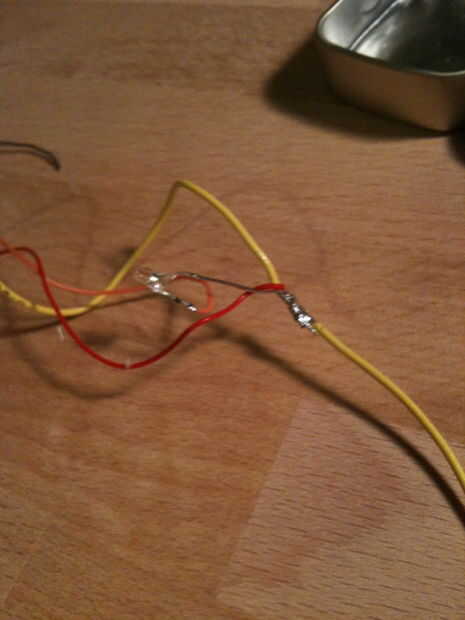 Añadir una longitud corta del alambre a la terminal del LED con el cable rojo para conectar la terminal positiva a quitado. Usted también necesitará soldar un cable de esta salida de la misma a la ficha de centro del portaboquillas CHSI (cable amarillo grueso en imagen).