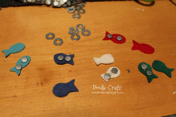 Then do a bunch! Hicimos 12 peces para cada conjunto... cada uno colores diferentes. De esta manera podemos usar esto para juegos sensoriales de color, así! Es más divertido que tener mucha de peces... se podría conseguir realmente creativo y diferente Criaturas submarinas!