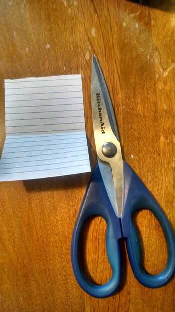 Use sus tijeras para cortar el papel el doble de lo que quieres tu bolsillo para ser y doblar por la mitad. Mina es Ripeado de un pequeño cuaderno.