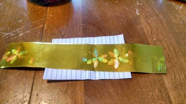 Cortar una tira larga de cinta y poner ii por la mitad de su papel. Tratar de conseguir lo más recto posible.