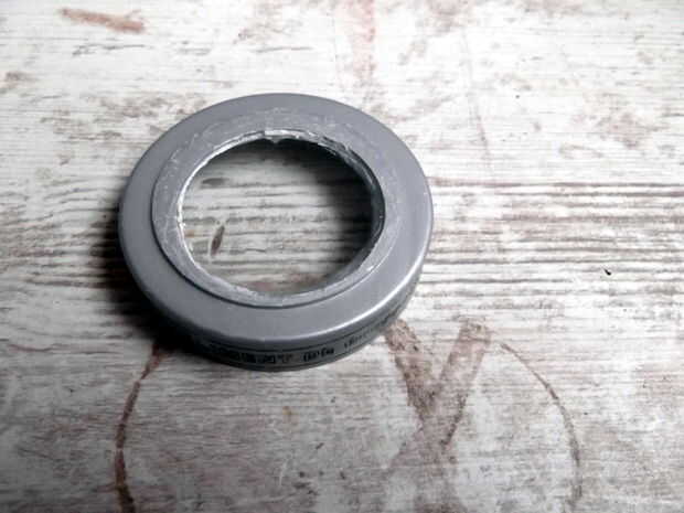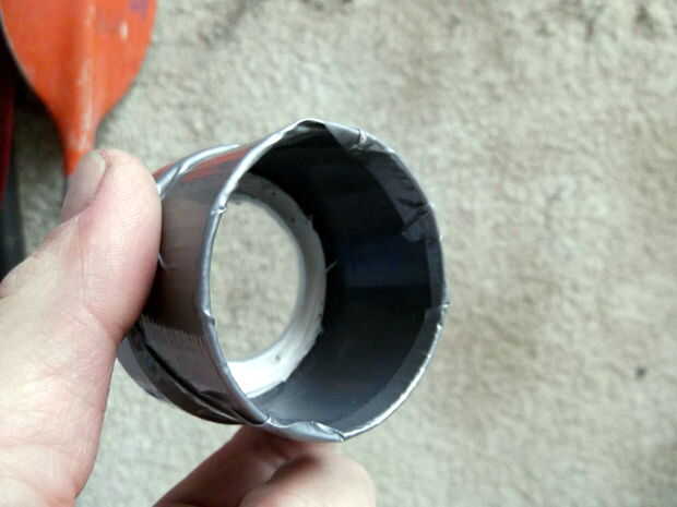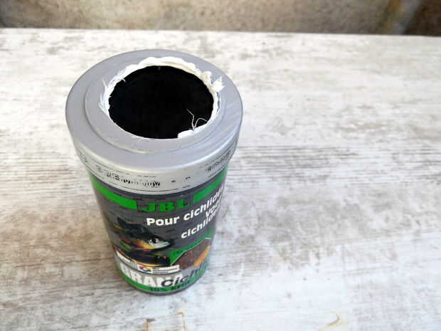 Cortar un agujero en la tapa de la caja con un serrucho - utilizar un diámetro ligeramente más pequeño que el diámetro del objetivo - y el objetivo de cristal en lugar del pegamento. Uso powerglue: secado rápido y resistente al agua. O silicona. Corte el exceso de pegamento. Mida la profundidad de la lente de su cámara cuando se haga zoom hacia fuera, añadir una distancia de seguridad y corte la base de la caja de plástico. Añadir powertape para sellar la tapa y tubo.
