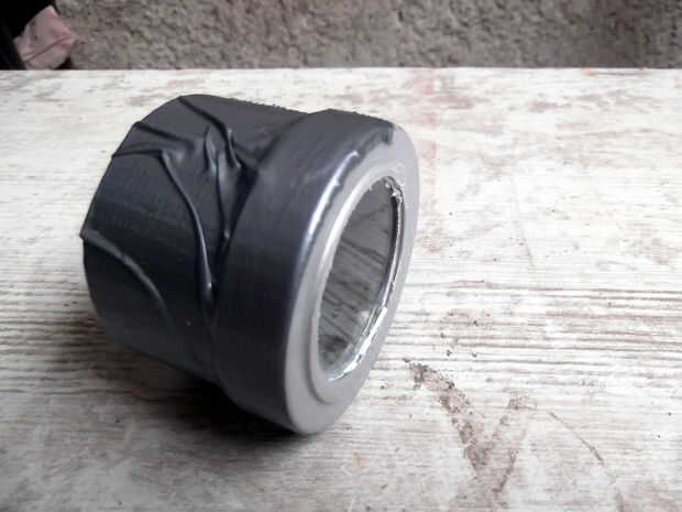 Se trata de un montaje de cámara que utiliza el bolsillo trasero de su Maillot.Las diapositivas de la sección gris (un pedazo de tubo de PVC) en el bolsillo trasero de su jersey. La tira del metal actúa como un clip y asegura la cámara.Si tu técnica