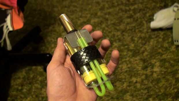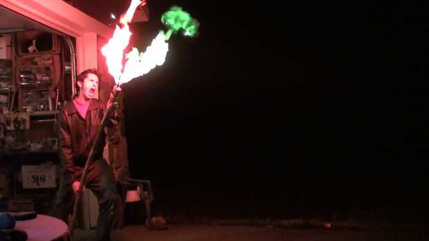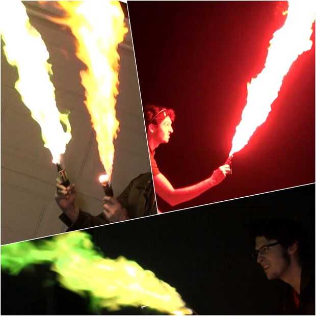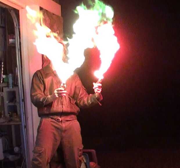 Tal vez algunos de ustedes experimentaron un laboratorio de pruebas de fuego común en la escuela secundaria. Aquel que intenta identificar la presencia de diferentes metales por palos poco sumergir en alcohol mezclado con sales y observación de qué color las quemaduras de la solución. Esto es básicamente que en el suero del super soldado. Este pequeño bebé puede disparar hasta 5 pies de fuego y disparar a dos colores a la vez (los tres colores son posibles si mezcla los arroyos de fuego). Esta cosa puede producir llamas impresionantes durante veinte segundos. Para mí, es bastante dulce para un bolsillo lanzallamas con quizás 20 gramos de combustible.