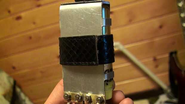 Correa de cuero de corte como se ve a 17 cm. agregar pegajosa volver velcro (mejor si usted cose en demasiado). Sólo añadir bastante velcro para colocar la correa juntos y no tener ninguna expuesta. Velcro se quema, por lo que es mejor no tener ninguna expuesta. Acomode las tiras de velcro adjunta en el lado de lo lanzallamas de las llamas como se muestra.