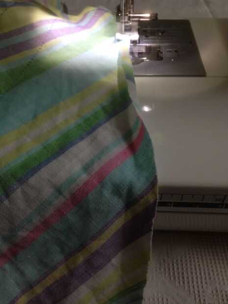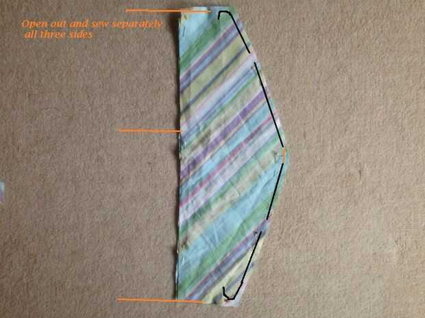 La tercera cubierta, coser en la parte superior con la apertura para el gancho y hasta los lados (ver imagen). Cuando coser usted sabrá en que punto usted tiene que parar en los lados... Si quiere coser demasiado en la parte inferior no podrás introducir la percha. Abrir los lados y doblar 1/2 una pulgada y coser un dobladillo en los tres lados. Sólo Deslice esta cubierta por la suspensión. No se cosen los lados. Cualquier momento puede quitar esta tapa para lavar. Attatch bastante arcos en los lados y parte superior.