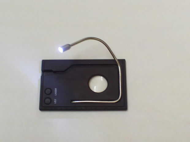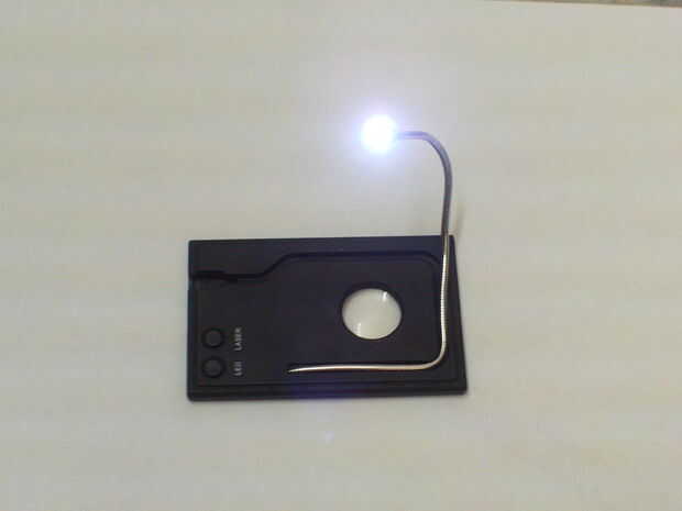 alguna vez has querido una luz de lectura que es brillante y bolsillo tamaño? Si sí, entonces este es perfecto! Esta luz de lectura es en la forma y el tamaño de una tarjeta de crédito y es delgada de 0,5 cm. Derecho se desliza en tu bolsillo o cartera. Tiene un puntero láser, una pluma, una lupa, un destornillador y regla marcas un lado. Es útil para viajar o incluso haciendo cosas de espía. Ayuda a leer palabras pequeña teeny usando la lupa. La luz es muy brillante. Es estilo de la serpiente y puede doblar de todos modos usted quiere. Además se ve genial!