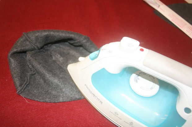 El lado del sombrero que usted previamente hilvanadas ahora tendrá abierto presionado.