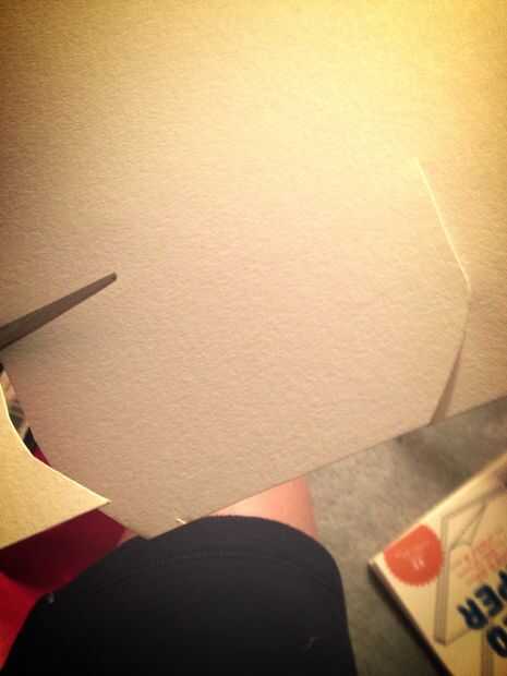 Asegúrese de cortar el papel lo suficientemente grande. Por qué sería capitalizar cada letra, no sé. Cortar el papel en una forma bastante cerca de la una en la foto.