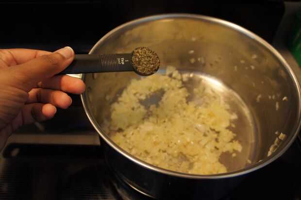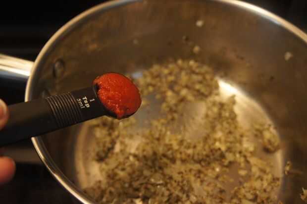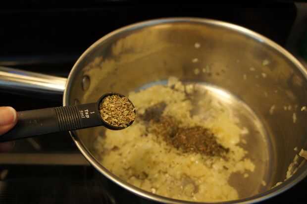 4) Añadir orégano, albahaca, tomillo, pimienta, sal y tomate de la pasta y saltear.