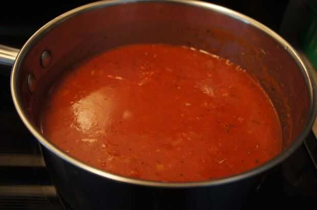 La salsa de la pizza está lista ahora. Esta salsa puede ser congelada y utilizada cuando sea necesario.