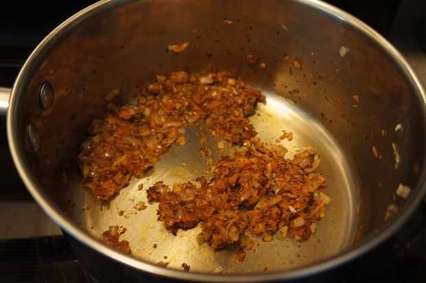 3) luego agregar la cebolla picada y rehogar hasta que se vuelve traslúcido.