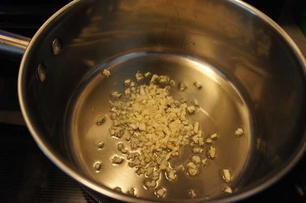 2) una vez el aceite esté caliente, añadir el ajo picado y rehogar durante un minuto.