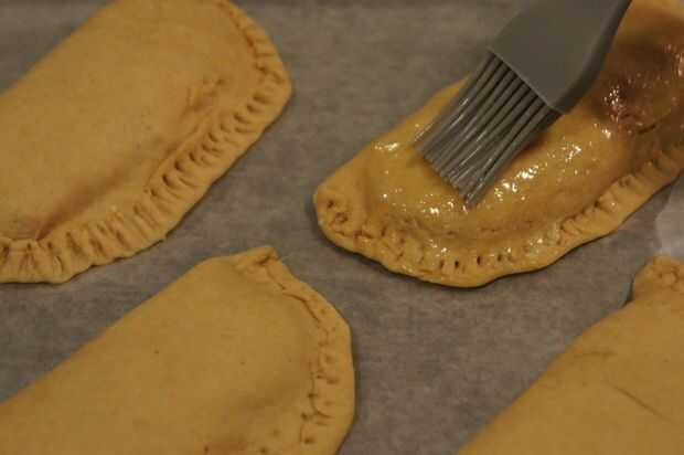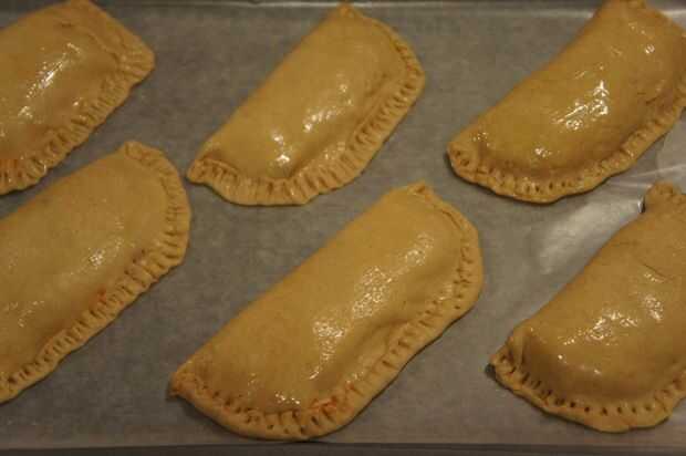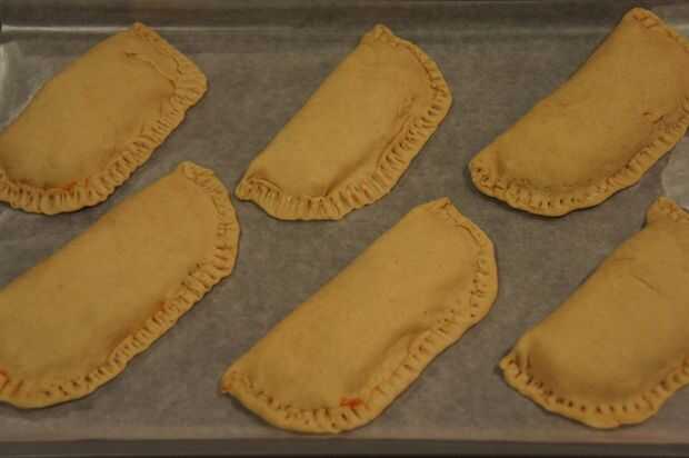 4) doblar el otro lado en la parte superior de él y sellar bien con un tenedor. (En esta etapa, los bolsillos de Pizza pueden ser congelados y utilizados más adelante.)